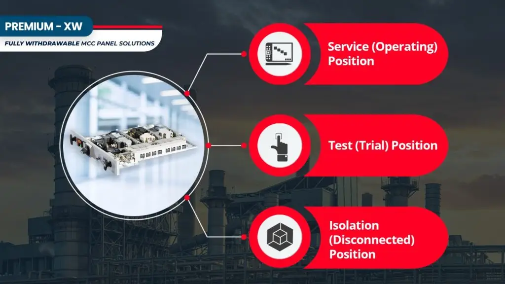 In Testing and Commissioning: Functional checks can be performed by operating each drawer in a “test position.” Fault detection can be achieved without de-energizing the system.